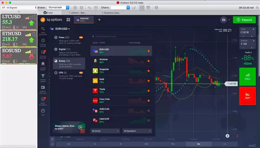 vfxAlert - The vfxAlert software is a full range of analytical tools with a convenient interface for trading binary options. In one working window we collect the most necessary data in order to correctly assess the situation on the market.